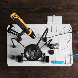 2-in-1 Magnetic Helping Hands Soldering Repair Station with Silicone Mat, 5X LED Magnifying Lamp, ESD Safe