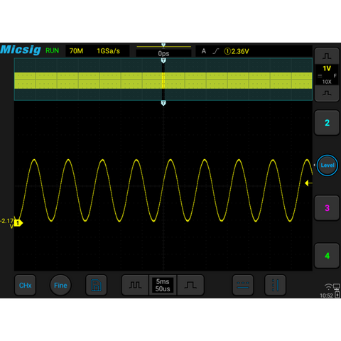 • 70Mpts Memory Depth: Hardware-based Zoom technology and up to 70Mpts memory depth, allow users to move and browse waveforms for much easier and quickly zoom in to focus on the interested area.