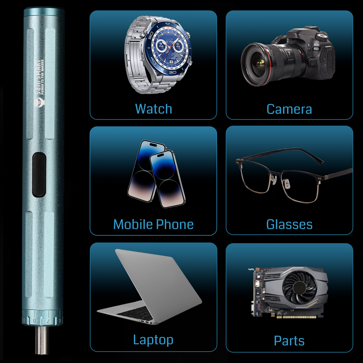 Equipped with an 800mAh lithium battery and 4000mAh power band case, our screwdriver boasts both a swift charging