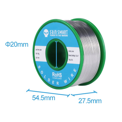SainSmart lead free solder wire is a professional soldering wire for the electronic device. It does not contain any lead in it and certified by ROHS. This is friendly to our environment and protects you from toxic odor. Feature with low melting point that can improve working efficiency. It can be widely used for home appliances repair and electronic equipment maintenance. We strongly suggested purchase with our best selling portable soldering iron Pro32 or TS80.