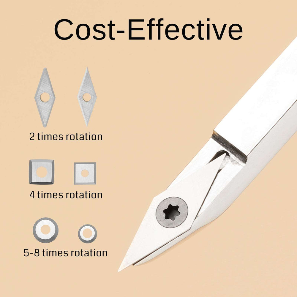 • Cost-Effectiveness: When the cutter inserts set for wood tools become dull and don't perform well, simply rotate the tip to obtain a fresh and clean cutting edge that can also last longer.