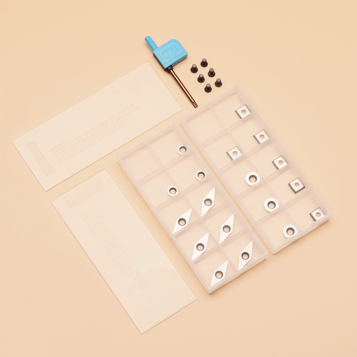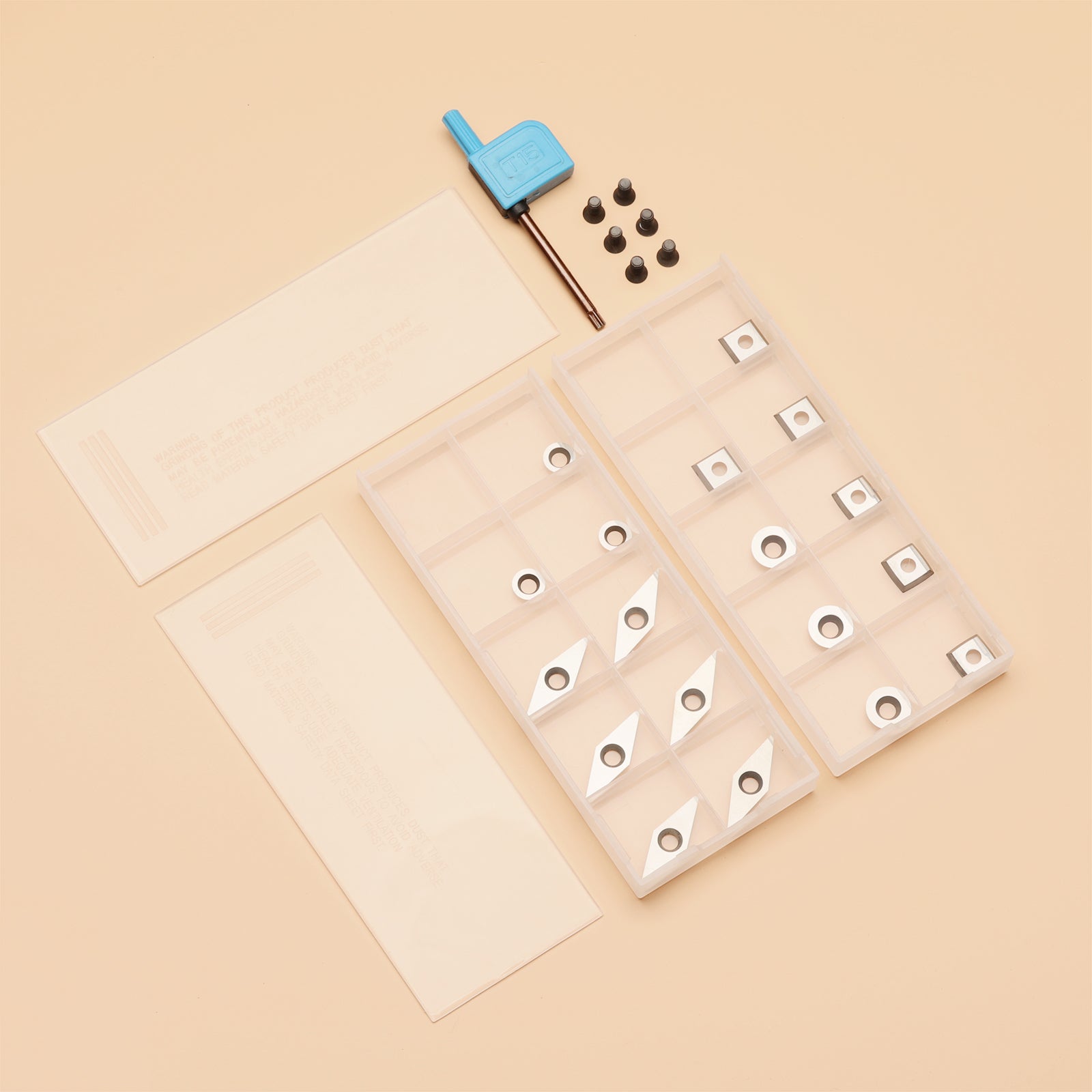 • Value Pack: This package includes 18 pieces of various shapes, meeting all your wood turning needs. Shapes includes 11 mm Square, 11 mm Square with Radius, 12 mm Round, 8.9 mm Round, and two diamond cutters of sizes 30x10 mm, and 28x10 mm.