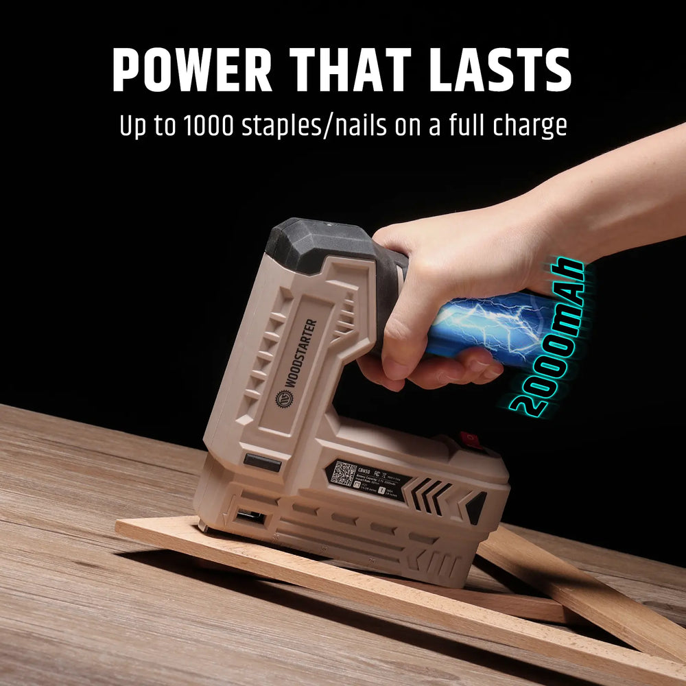 A2: The 3.7V 2000mAh battery charges in just 3 hours via a convenient USB port. Once fully charged, it can be used for up to 800-1000 staples or nails—perfect for a full DIY session!