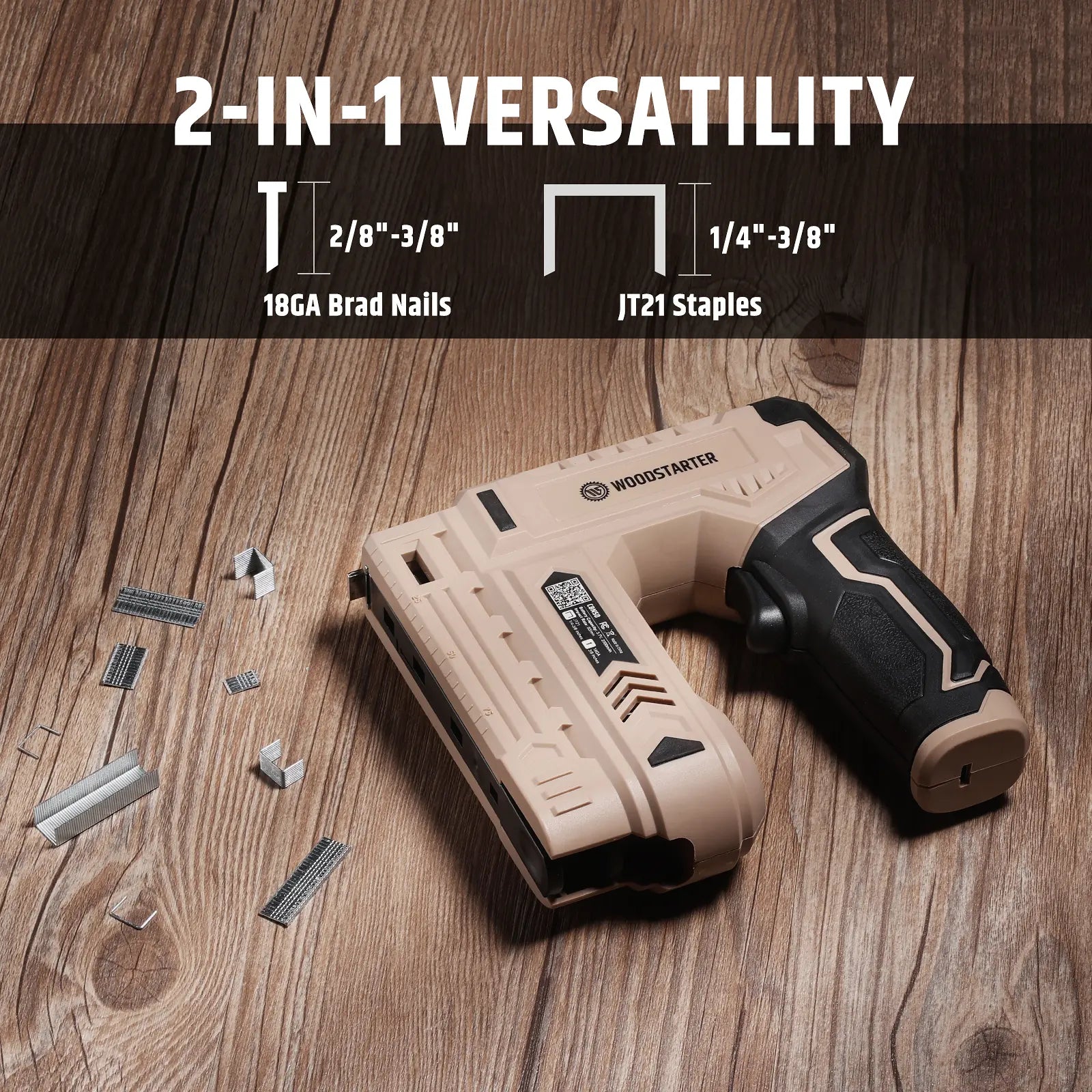 A3: This staple gun supports 18GA nails (2/8"-3/8") and JT21 staples (1/4"-3/8"). It’s ideal for light-duty tasks like woodworking, furniture repair, and crafting.