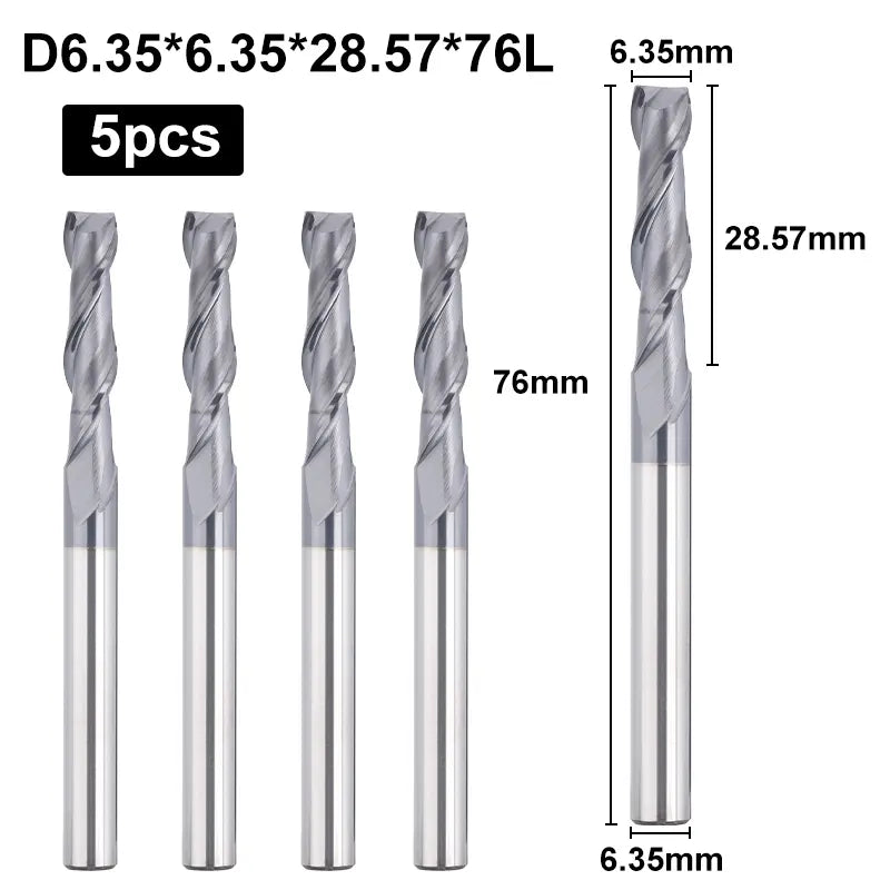Specification: Each end mill bit has 2-flute with a flat nose. Cutting diameter: 1/4", cutting length: 1-1/8", overall length: 3''. The extended cutting edge enables deeper and more precise cuts than standard long-end mills.