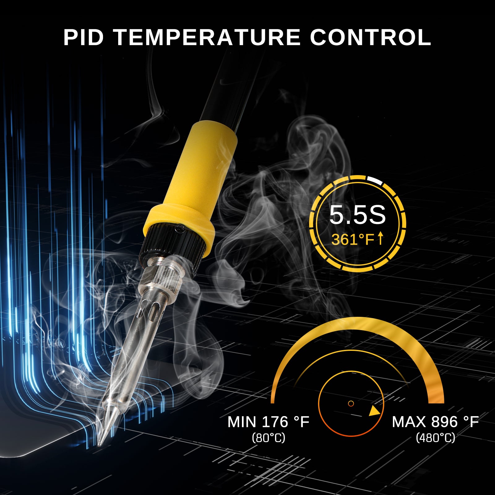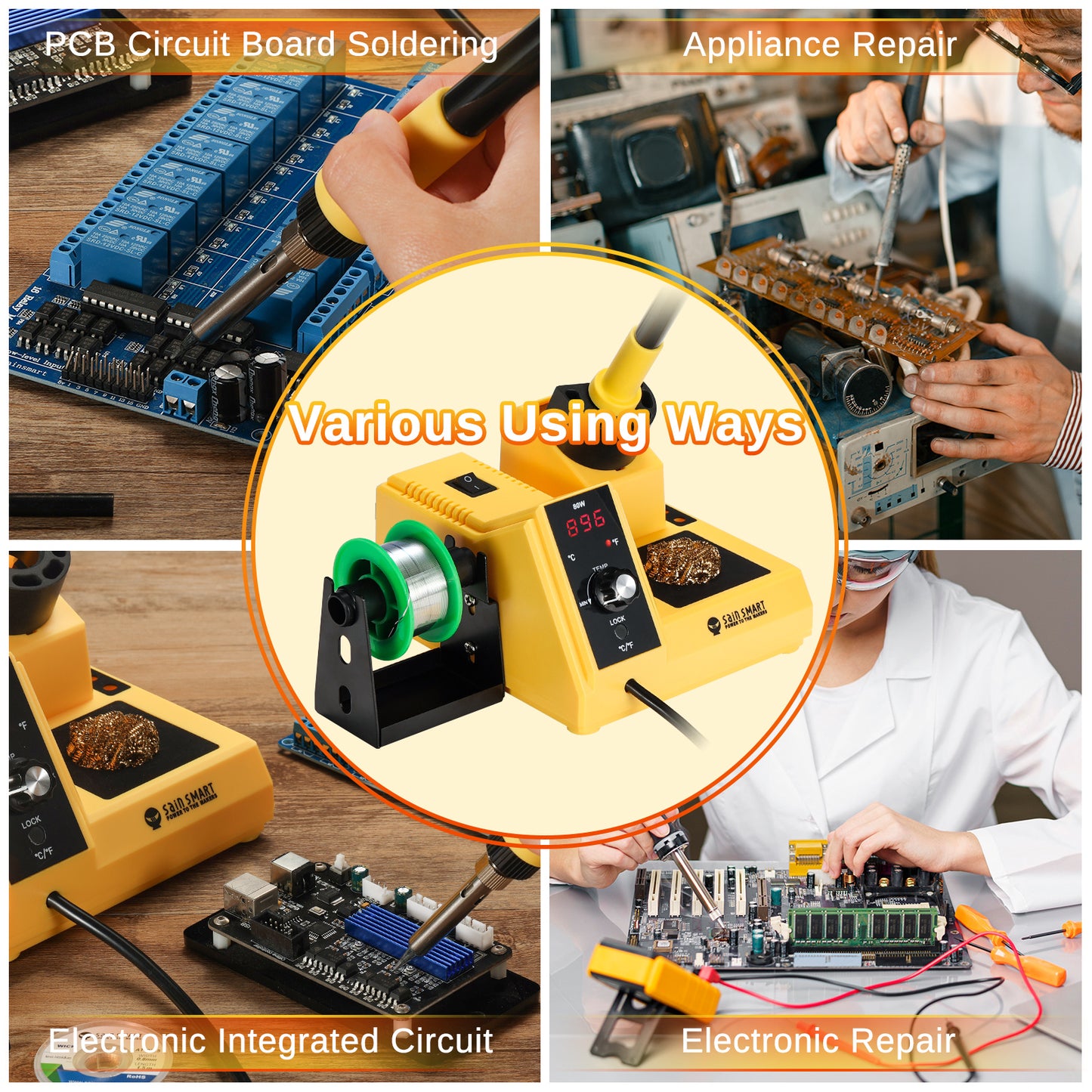 In this soldering station kit, we include 5 types of the most commonly used soldering accessories. They are all well made and have better quality than accessories from other brands. Especially the 5 extra soldering tips coated with an anti-oxidation coating and the solder sucker that comes with a double ring suction soldering pump which provides a higher suction power.