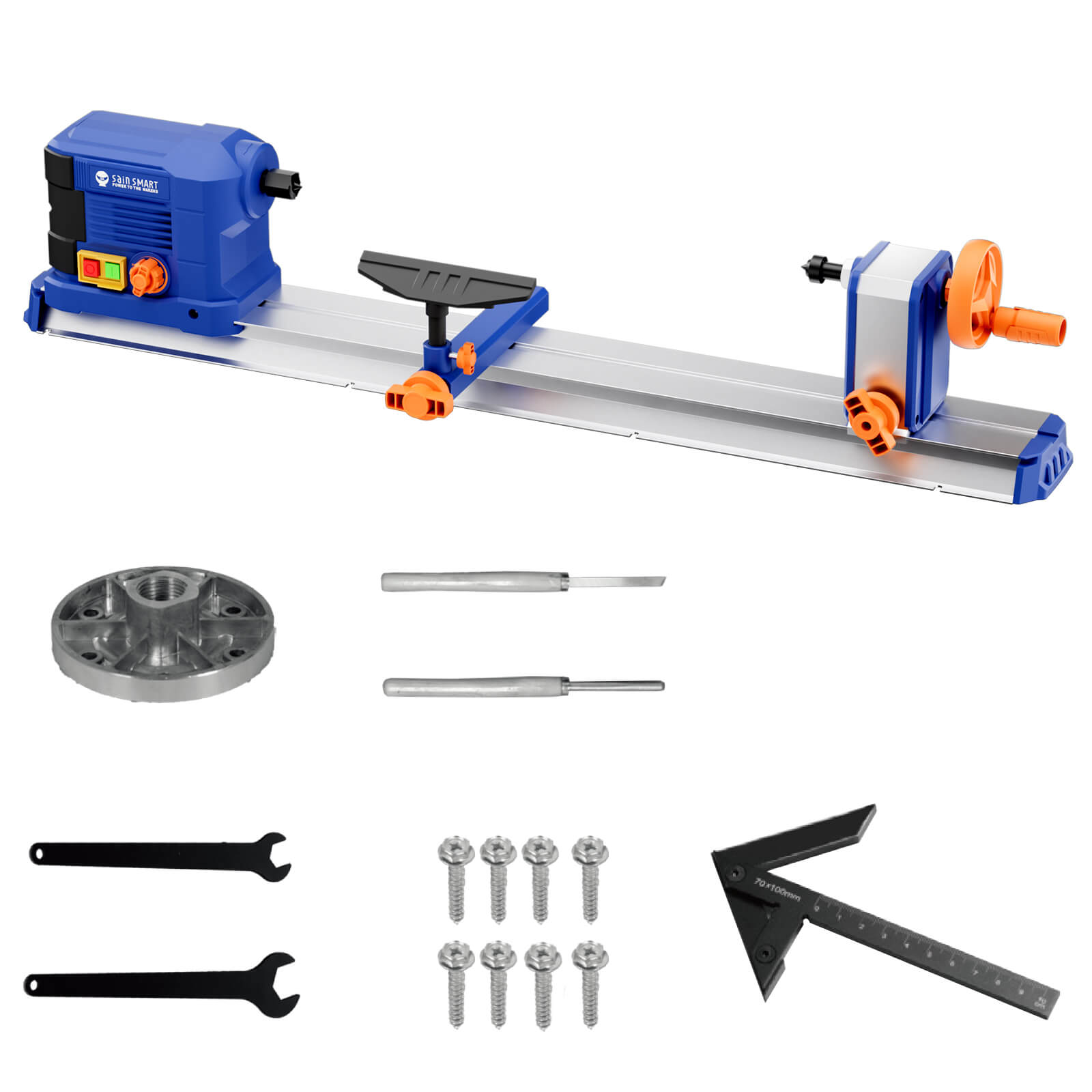 Introducing SainSmart powerful 600W 0.8 HP Mini Wood Lathe, the ultimate tool for woodworking, turning, and milling. With variable speed control ranging from 800 to 3000 RPM, this lathe offers precision and versatility for all your projects. Ideal for both professionals and hobbyists, it features a sturdy aluminum base and a comprehensive set of accessories including a lathe chuck, face plate, tailstock, tool table, woodturning chisels, and mounting screws. Perfect for woodturning, pen making, and bowl turning, this lathe ensures stability and accuracy with every cut. Whether you're working on mini lathe projects, wood carving, or metalworking, our benchtop lathe is equipped to handle it all, making it an essential addition to any workshop. Complete with a lathe tool rest, steady rest, and center finder tool, this machine is designed for superior performance and ease of use. Enhance your woodworking experience with our all-in-one mini lathe machine.