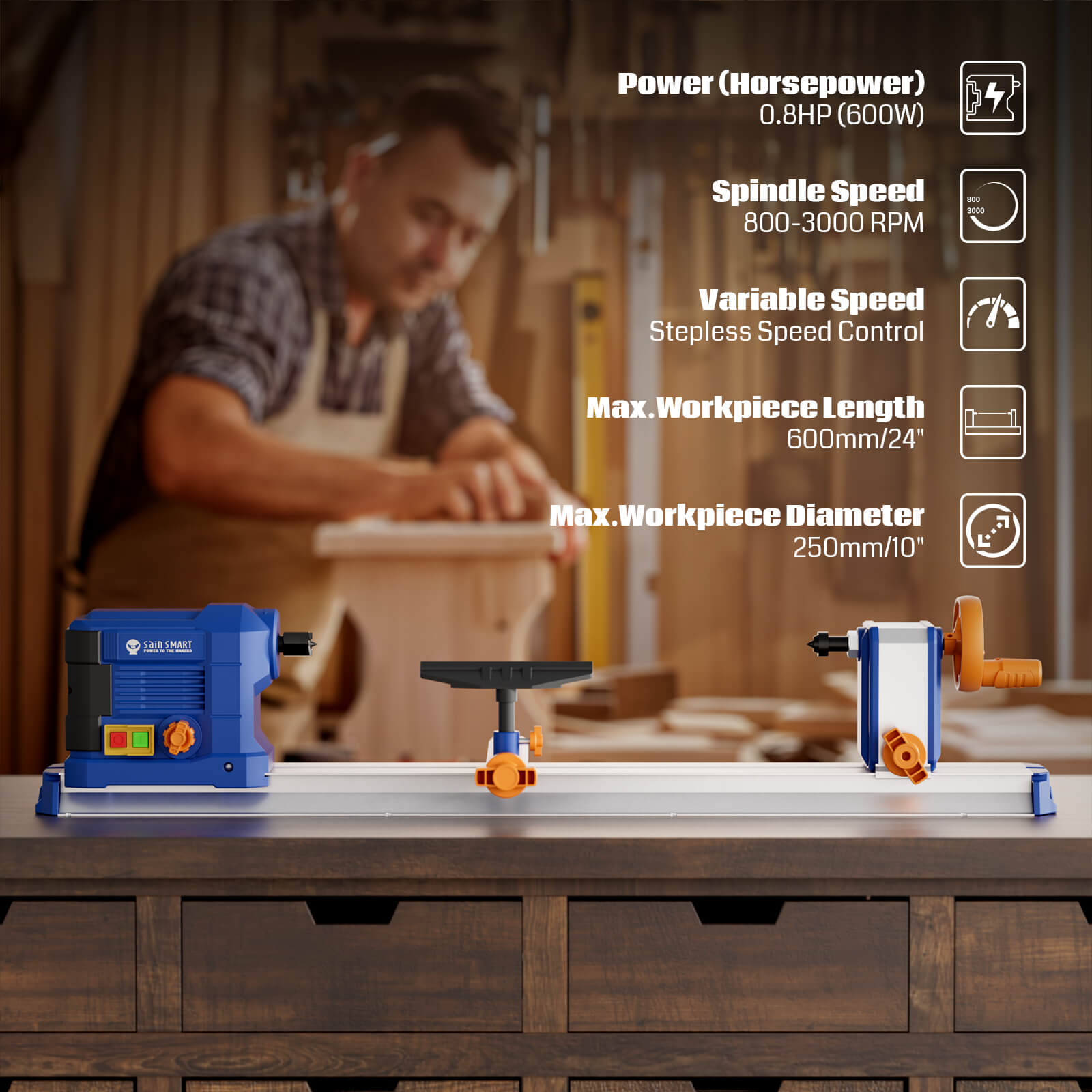 Benchtop Wood Lathe, 10''x24'', 600W 0.8 HP Power Wood Turning Lathe with Step-Less Variable Speed 800-3000 RPM | SainSmart Benchtop Wood Lathe, 10''x24'', 600W 0.8 HP Power Wood Turning Lathe with Step-Less Variable Speed 800-3000 RPM | SainSmart Benchtop Wood Lathe, 10''x24'', 600W 0.8 HP Power Wood Turning Lathe with Step-Less Variable Speed 800-3000 RPM | SainSmart Benchtop Wood Lathe, 10''x24'', 600W 0.8 HP Power Wood Turning Lathe with Step-Less Variable Speed 800-3000 RPM | SainSmart