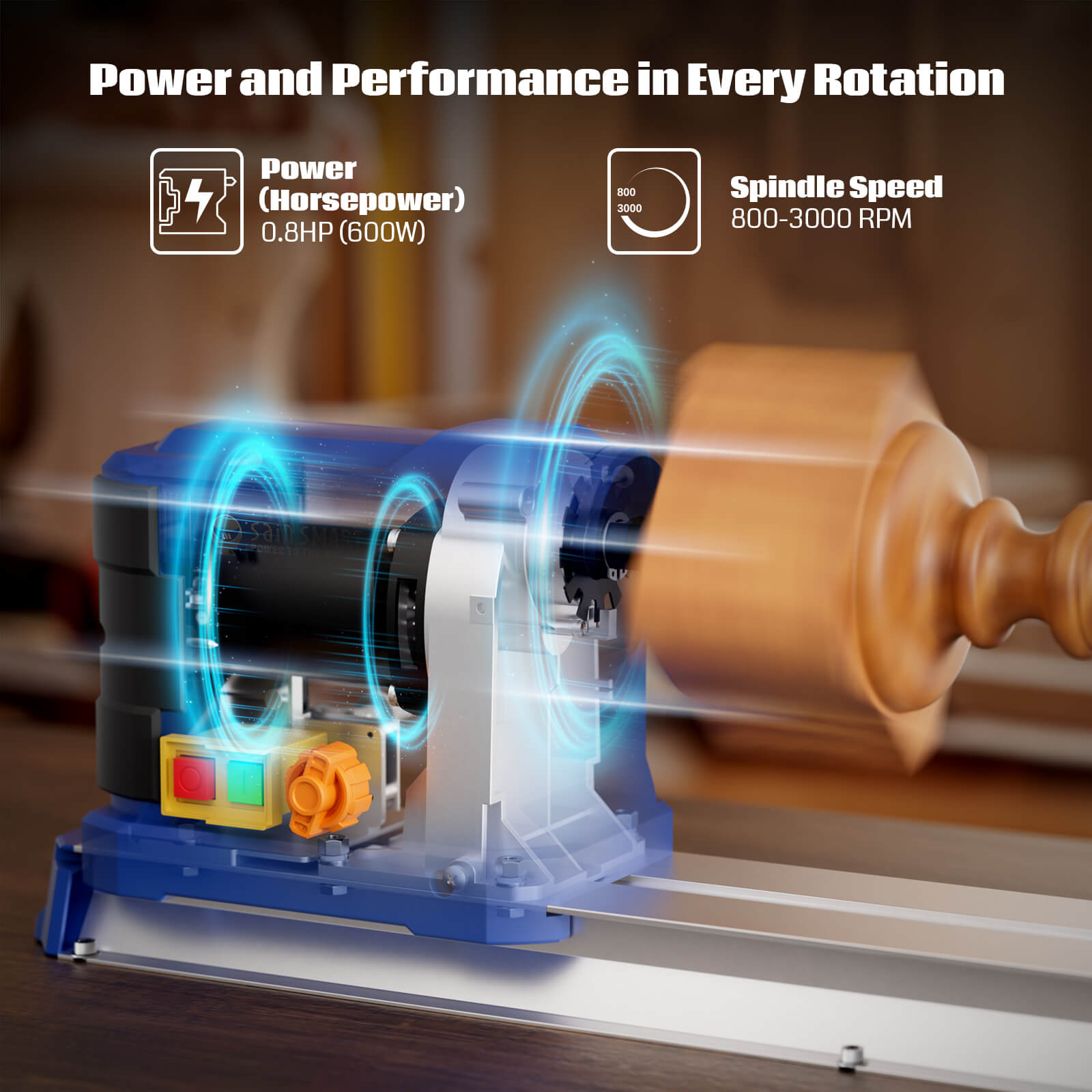 Powerful 0.8 HP Motor for Woodturning: Our lathe is equipped with a 0.8 HP (600W) motor, delivering exceptional power and performance for all your woodworking projects. Perfect for both hobbyists and professionals, this machine ensures efficient and precise woodturning.