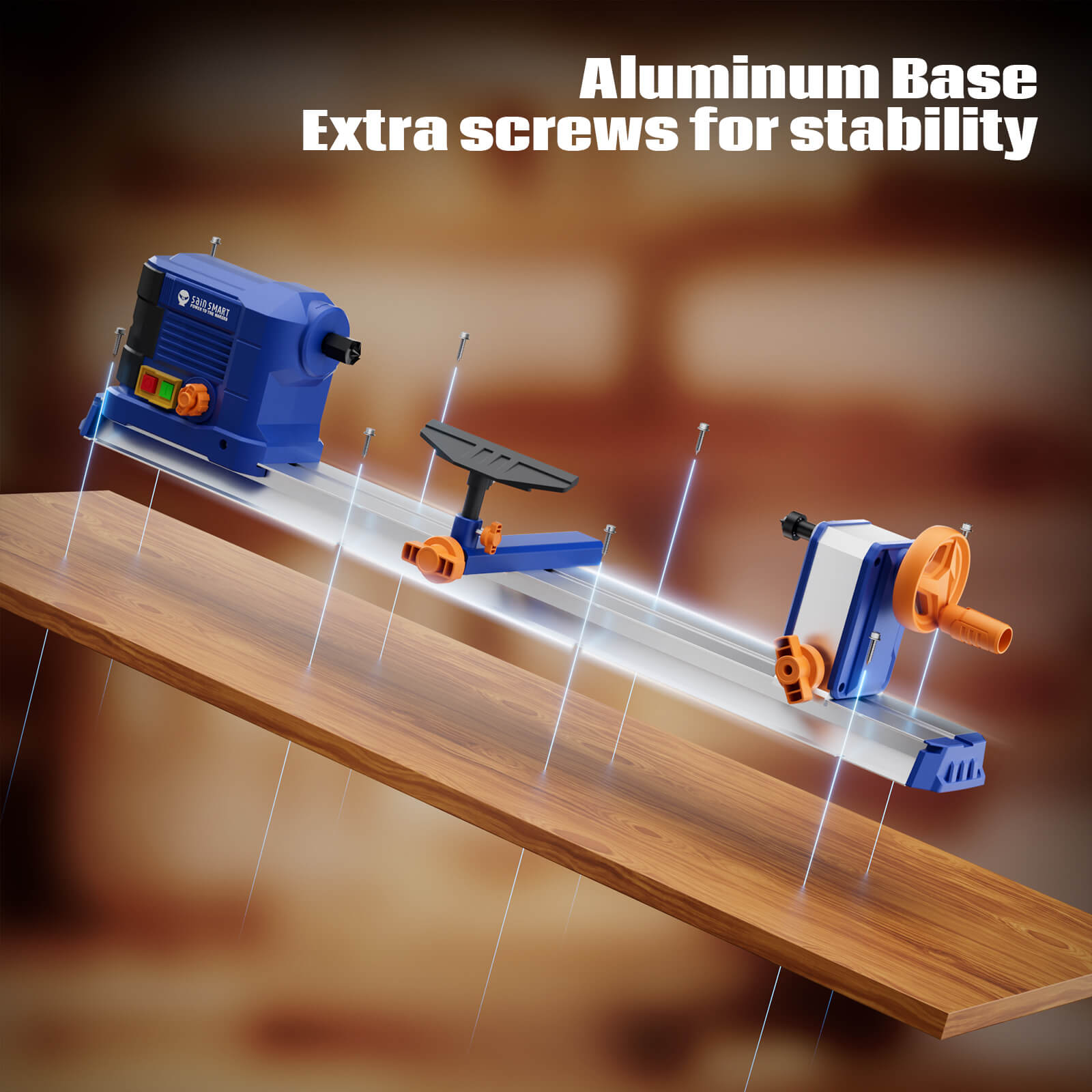 Versatile and Robust Design: Handle various projects with a maximum workpiece diameter of 250mm (10") and a length of 600mm (24"). The sturdy aluminum base with extra screws ensures stability, making it ideal for bench and tabletop setups in any workshop.