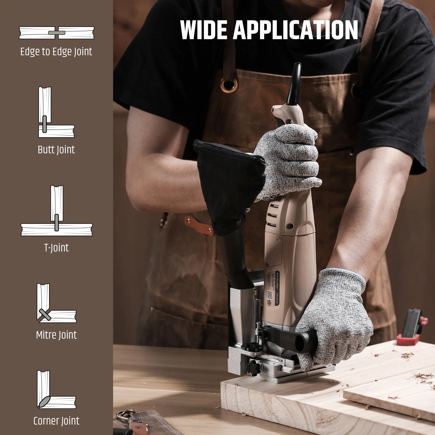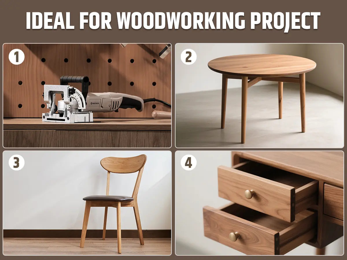 A1: Yes. With its powerful 8.5Amp motor and 12000RPM cutting speed, this biscuit joiner works smoothly on a wide range of materials, including hardwood, softwood, plywood, and MDF. Whether you're crafting fine furniture or repairing cabinets, it delivers clean and accurate joints every time.