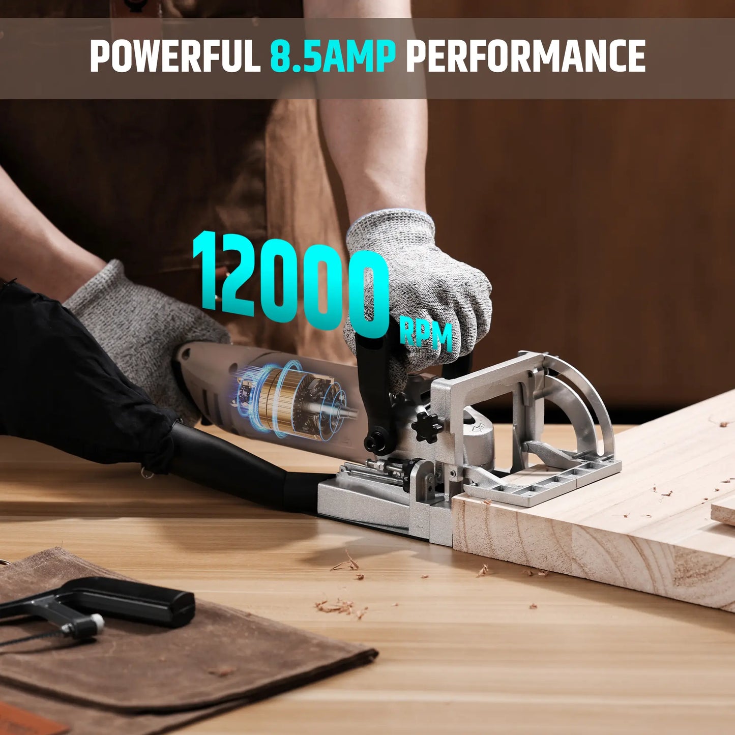 Powerful Motor for Fast & Clean Cuts: Features a high-speed 12000RPM 8.5Amp motor for effortless, accurate joinery—ideal for woodworkers who need both power and precision