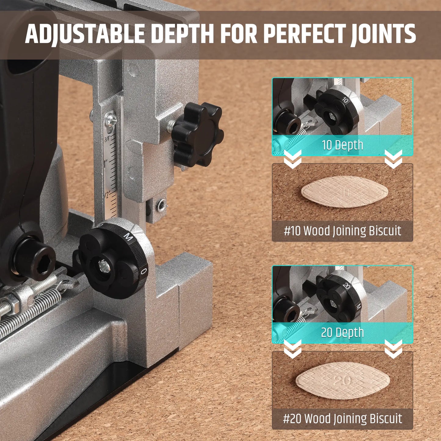 Adjustable for Any Project: 0–90° angle and multi-depth settings let you fine-tune every cut. Compatible with #0, #10, and #20 biscuits to match all your woodworking needs