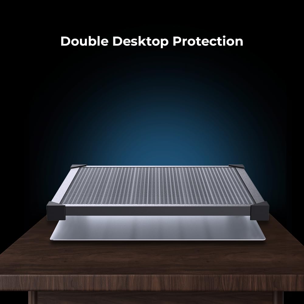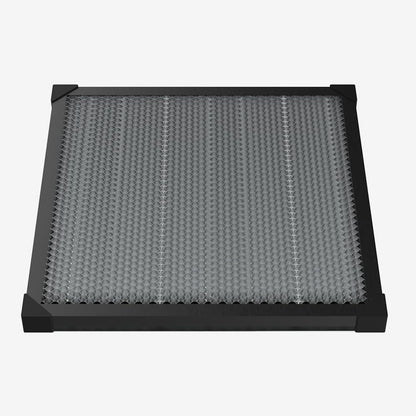 Durable laser honeycomb cutting bed, built from high-quality, all-metal materials with a galvanized iron frame and aluminum alloy edging. Features multi-protection design, 8mm large-aperture honeycomb for fast heat dissipation, and a 500x500x22mm size, providing ample space for cutting. Compatible with dioxygen, fiber, and CO2 laser cutting machines.