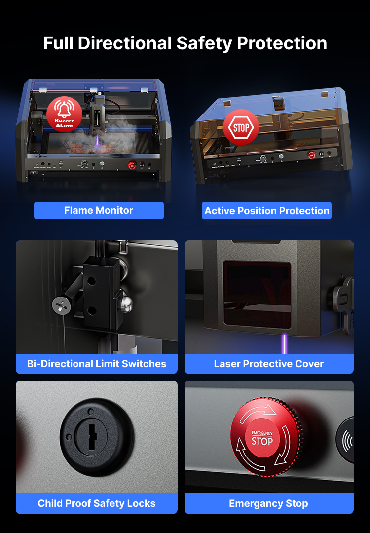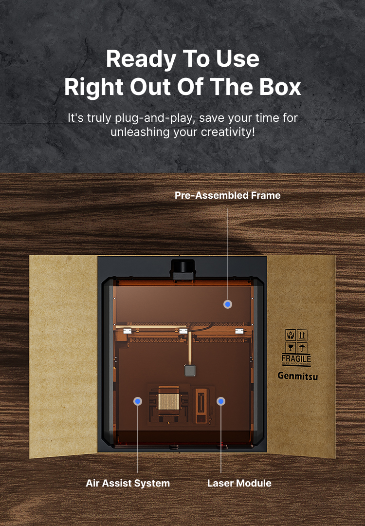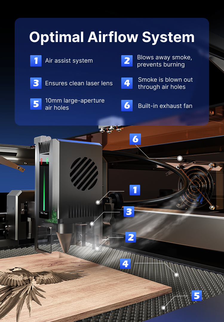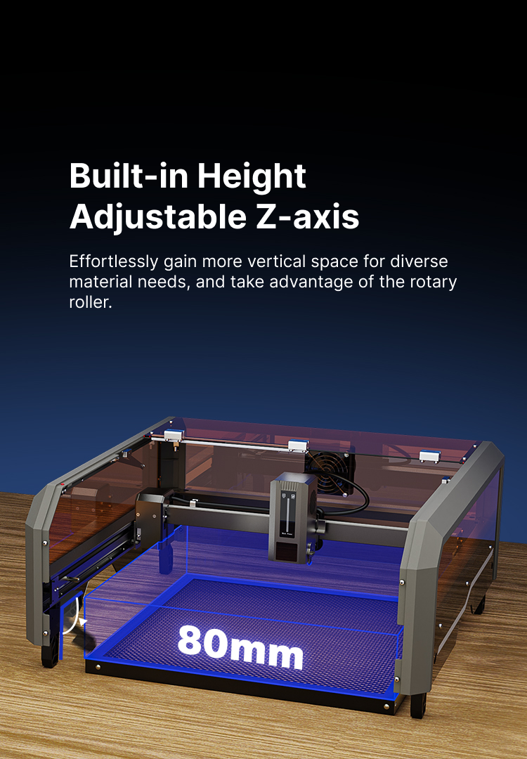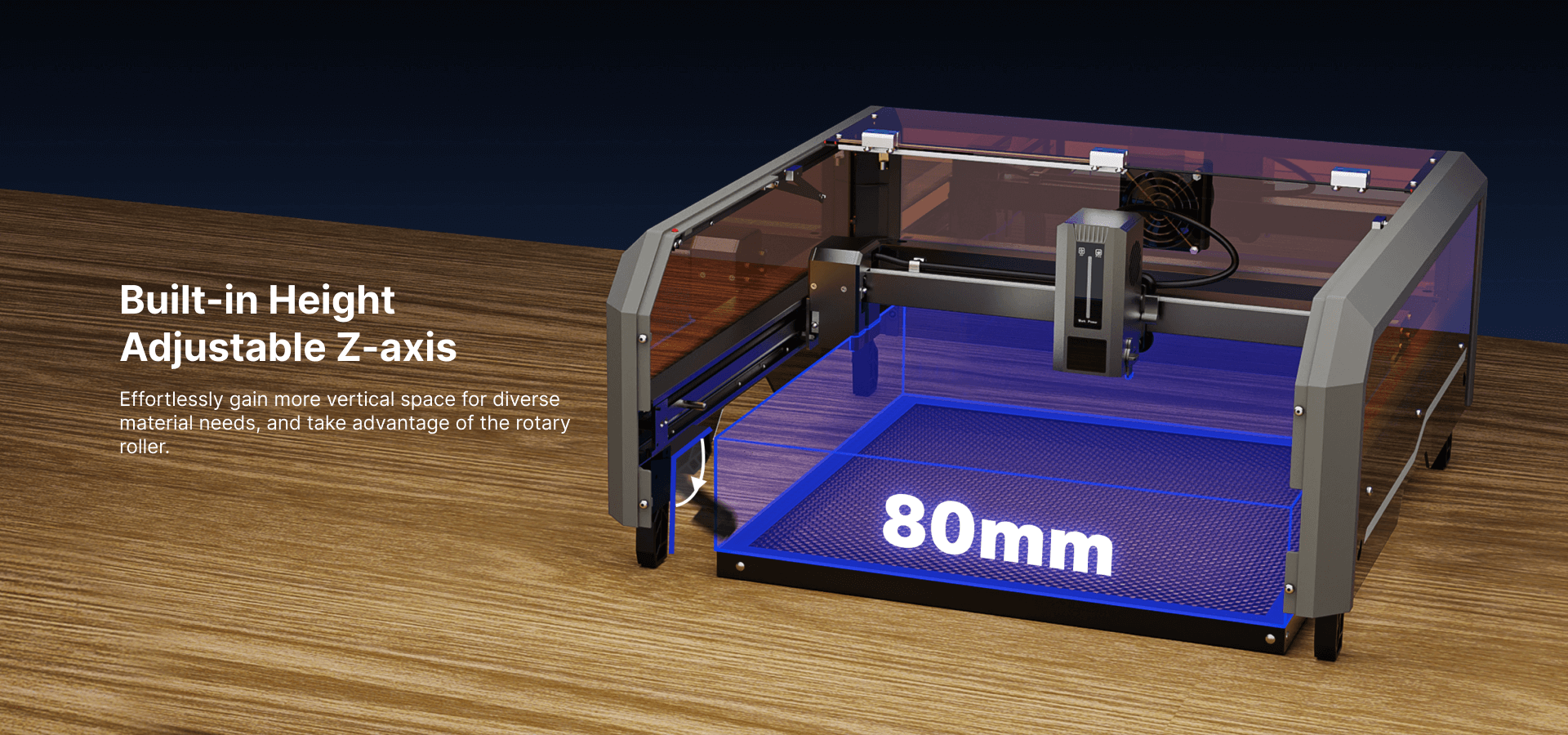 We also have new accessories coming soon, including: Air purifier, Y-axis Rotary Roller, 3-1 Rotary Roller with Jaw and Chuck, 40W Sole Laser Module, and other Laser Modules to be developed in the future.