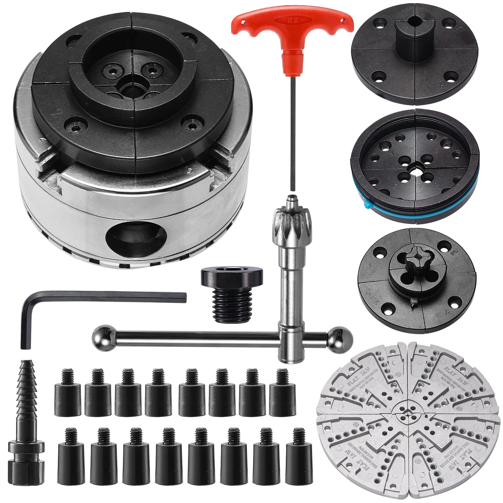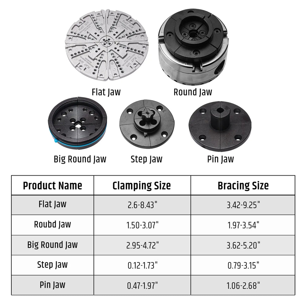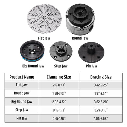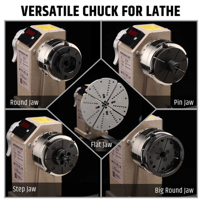 A: The WOODSTARTER Lathe Chuck Set is incredibly versatile, with its self-centering 4-jaw design allowing it to hold a variety of wood shapes and sizes. It includes multiple jaw options—pin, step, round, big round, and flat—making it perfect for small, delicate pieces as well as larger, more robust projects.