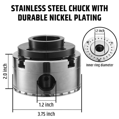 A: The WOODSTARTER Lathe Chuck Set is built to last, with a durable nickel-plated finish that resists rust and corrosion. This protective coating ensures long-lasting performance, even in demanding workshop conditions, making it an ideal choice for woodworkers who need reliability and durability.