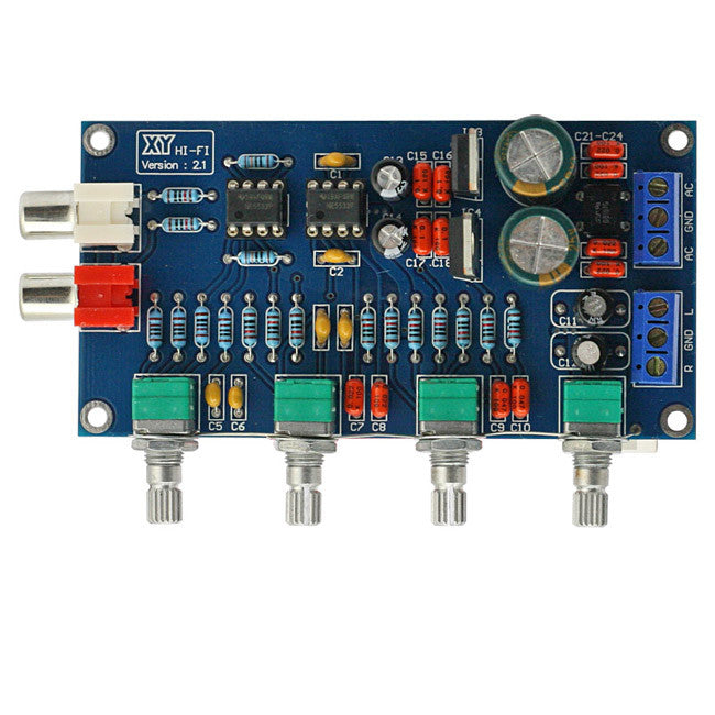 Including 10 times the preamplifier and the treble, alto, bass, volume control.