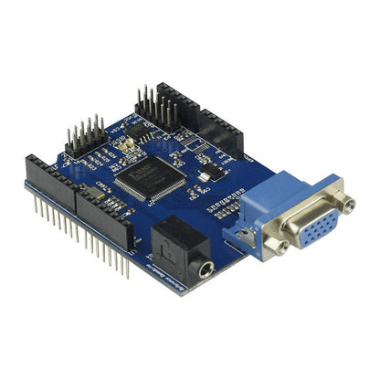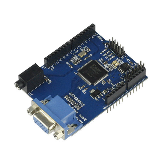 Gameduino is a game adapter for Arduino (or anything else with an SPI interface) built as a single shield that stacks up on top of the Arduino and has plugs for a VGA monitor and stereo speakers. The sound and graphics are definitely old-school, but thanks to the latest FPGA technology, the sprite capabilities are a step above those in machines from the past. The adapter is controlled via SPI read/write operations, and looks to the CPU like a 32Kbyte RAM. (Unlike many 8-bit machines, there are no restrictions on when you can access this RAM). There is even a handy reference poster (which you can download below) showing how the whole system works.