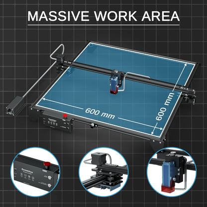 - Large Format Laser Engraver: 600mm x 600mm workspace allows for plenty of possibilities for large designs.