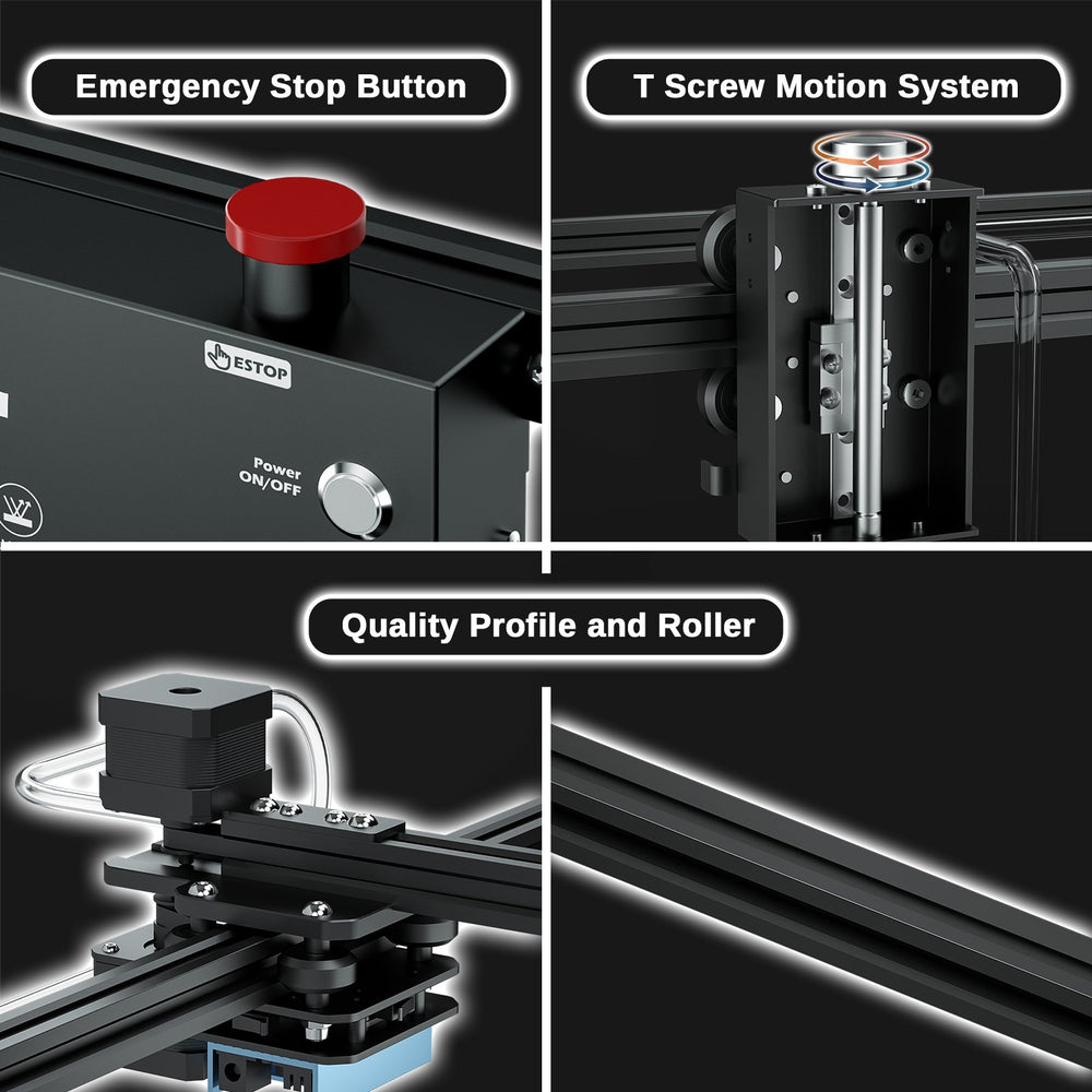 - Emergency Stop Button: Immediately halts the laser in case of an emergency.