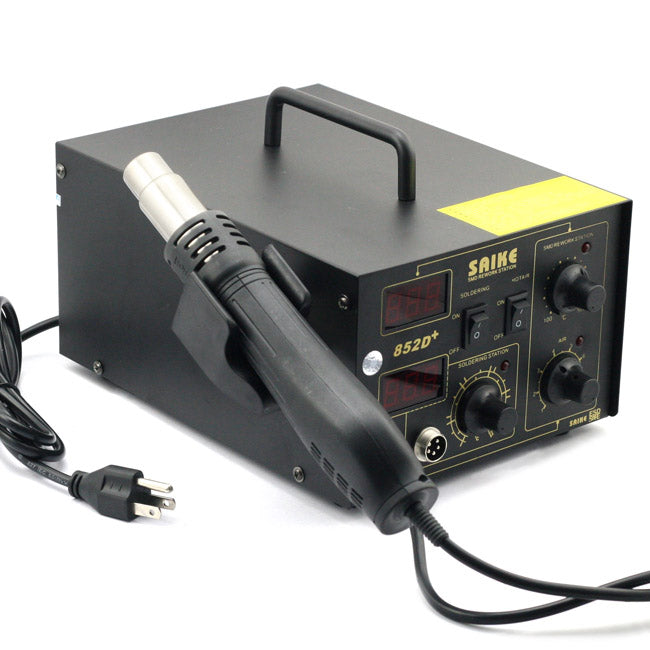 Sensor close loop of Saike 852D+ , micro-computer over "0" control, LED indicator, big power, fast temperature rising, accurate temperature, not affected by wind volume.