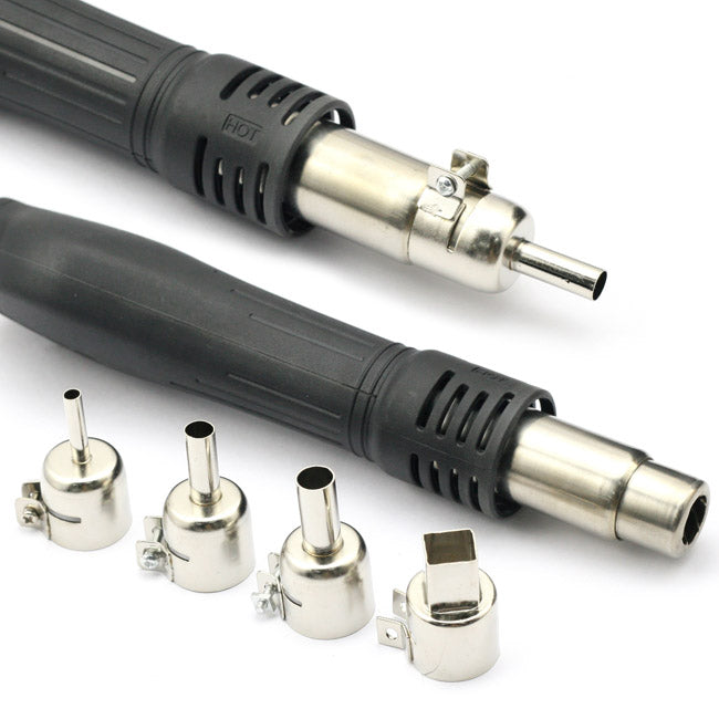 Saike 852D+ is also with brushless wind motor, long life and low noise. Suitable for SOIC, CHIP,QFP,PLCC,BGA, heating shrink, drying, lacquer removal, viscidity removal, ice-out,pre-heating and glue soldering.