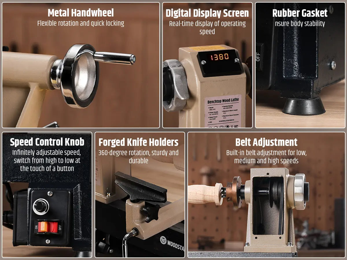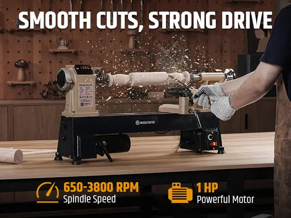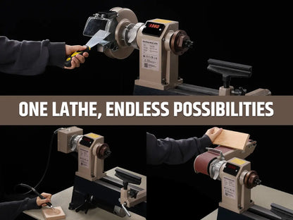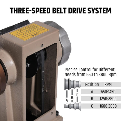 A: Yes, this lathe features a variable speed control system with a 3-speed range from 650 to 3800 RPM, allowing you to easily adjust the speed to meet the needs of different projects, whether you're working on fine details or heavy-duty tasks.