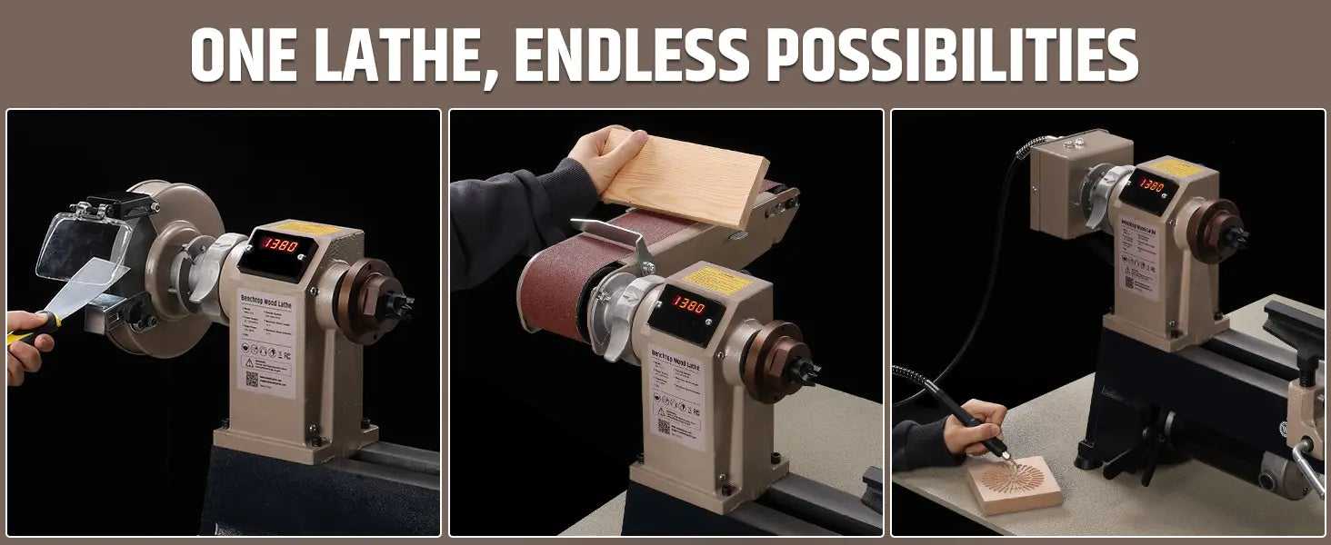 A: Yes, the WOODSTARTER lathe includes extension ports, making it easy to attach a belt sander, grinding wheel, or rotary tool. This dual-function design gives you the flexibility to expand your workshop for a variety of woodworking tasks.