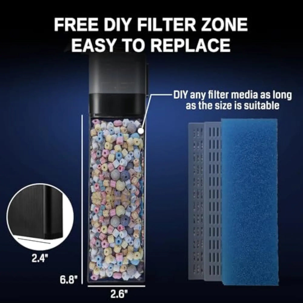 DIY Customizable Filtration Zone: The independent filtration zone allows for DIY customization of filter materials, giving you the flexibility to freely combine a variety of other filtration materials to achieve tailor-made water filtration